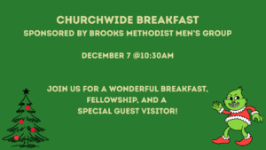 The Methodist Men will be hosting a churchwide breakfast on December 7th before worship, and we are excited to announce a special visit from the Grinch himself!